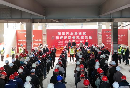 2025年10月31日上午,青島市即墨區(qū)住房和城鄉(xiāng)建設(shè)局組織即墨區(qū)部分施工企業(yè)分管質(zhì)量負責(zé)人和技術(shù)負責(zé)人、即墨區(qū)建筑業(yè)協(xié)會部分會員單位負責(zé)人、部分在建項目負責(zé)人等100余人,到濟南公司承建的山東大學(xué)青島校區(qū)工程技術(shù)研究院D區(qū)項目開展“2025年即墨區(qū)建筑工程質(zhì)量現(xiàn)場觀摩交流活動”。